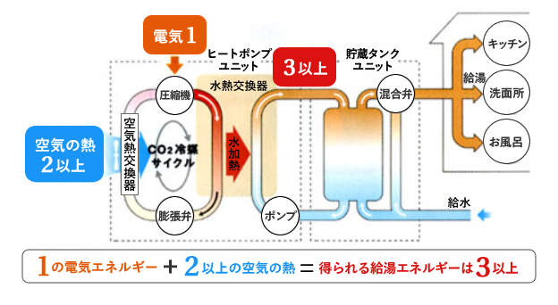 空気の熱を利用して効率よくお湯を沸かす。次世代給湯システム