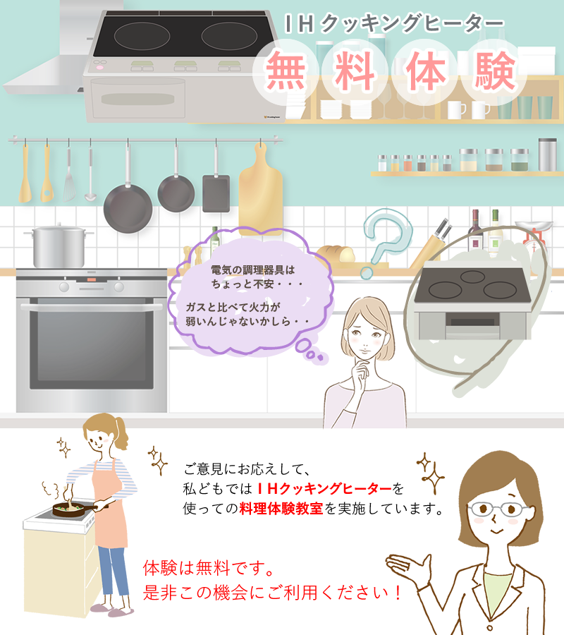 ご希望に添ったお料理をIHクッキングヒーターを実際に使い、試食していただけます。