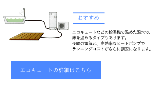 床暖房は、室内における上下の温度差が少なく、また気流感のない輻射暖房で快適性が高く、最近人気の高い暖房方式です。